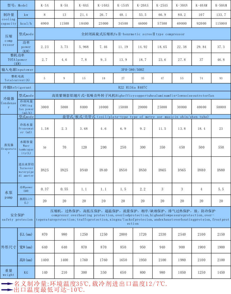 8.水冷及風冷式規格齊全(功率:3HP-300HP,制冷量從600W至34800W)專門設有適合各行業機械設備配套之機型,可按客戶工藝要求制造。