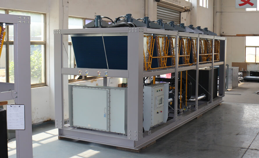 1)防爆型低溫乙二醇制冷機組:主令控制器根據 GB3836.1-2000 《爆炸性氣體環境用電氣設備 通用要求》、GB3836.2-2000《爆炸性氣體環境用電設備 隔爆型“ d ”》和 GB3836.3-2000《爆炸性氣體環境用電氣設備 增安型“ e ”》 的規定而設計制造。能夠滿足工藝的特殊要求。